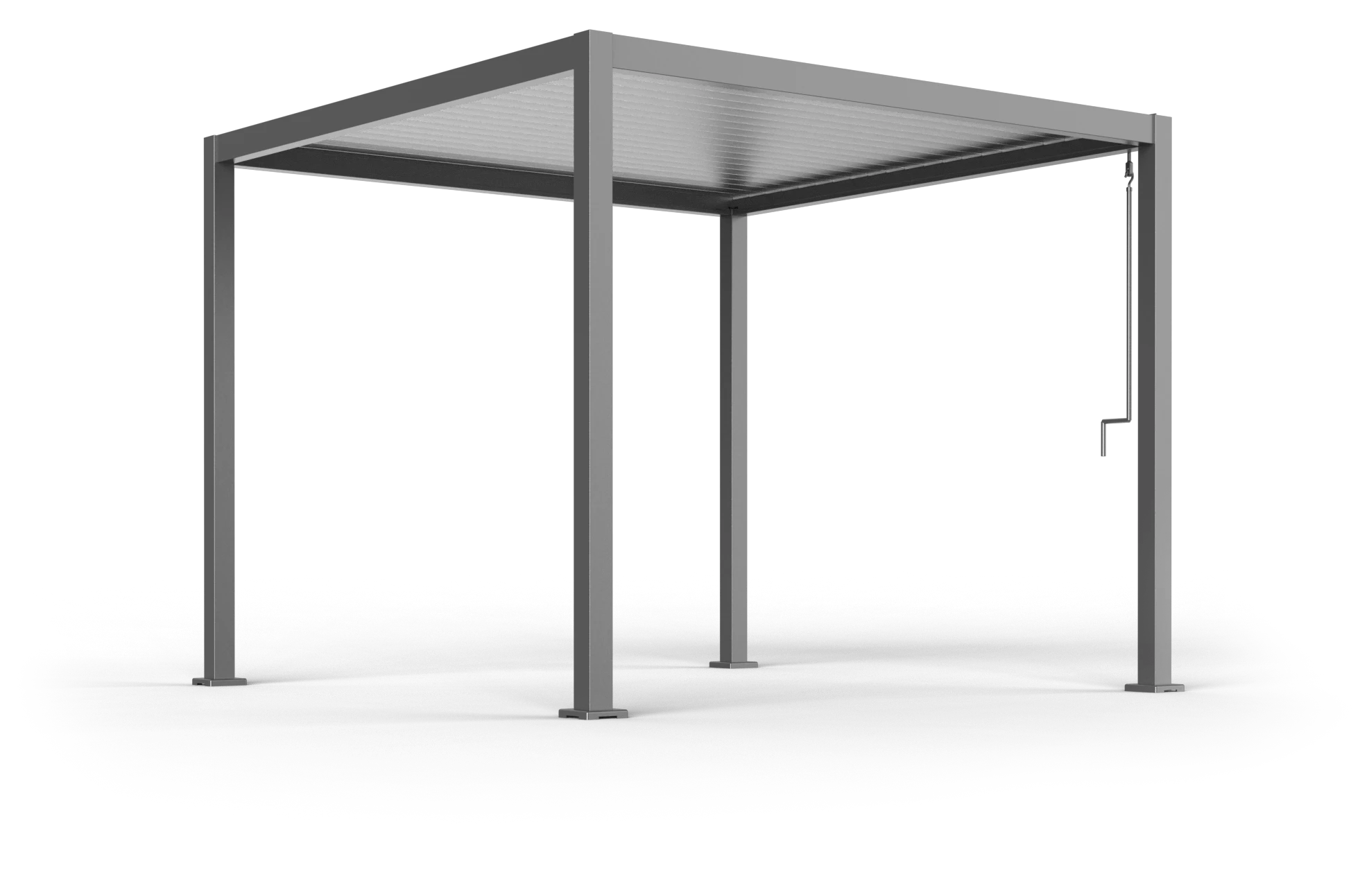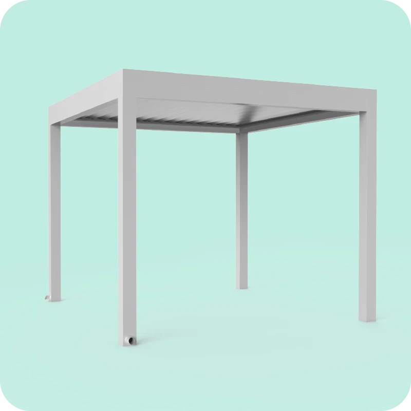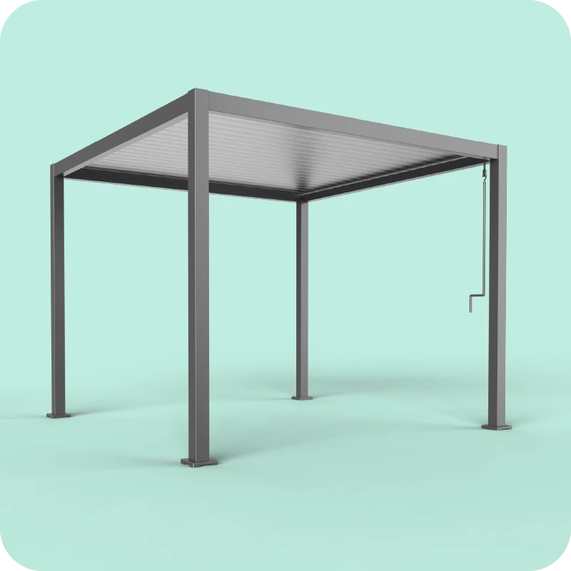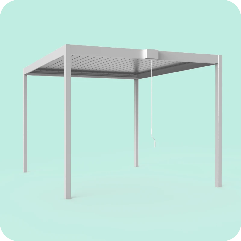 Aluminyum malzemeden imal edilen, 3 m x 3 m ve 3 m x 4 m hazır ebat opsiyonları ile üretilen, al hemen kur manuel bioklimatik pergola